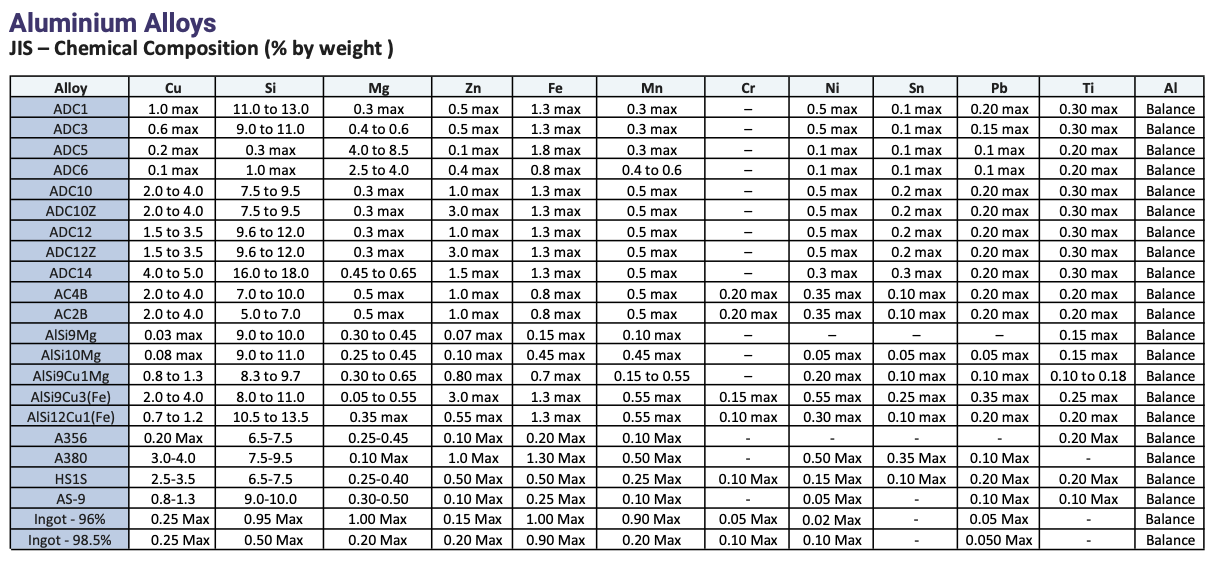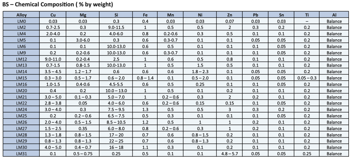 Lingotti di alluminio ADC12/AK5M2/EN AC 46100 / DIN 226 (46000) Soluzione Personalizzate su richiesta. Produzione indiana.